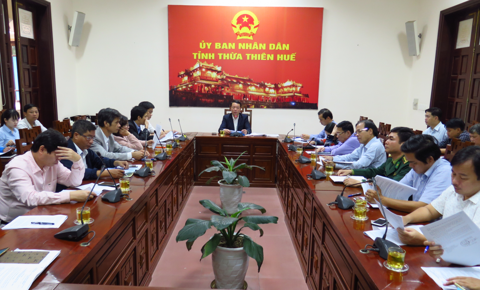 Vice Chairman of the Provincial People's Committee Phan Thien Dinh chairs the meeting with departments, agencies and localities