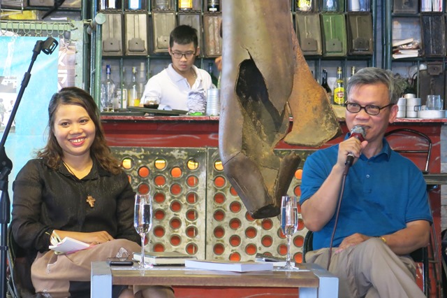 Dr. Nguyen Huu Liem (right) exchanges with readers