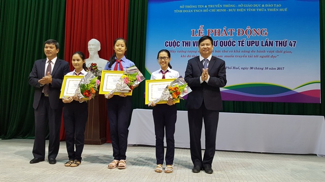 On this occasion, Tran Thi Ai Van, a student of Nguyen Hue high school was given the "National Promising Writer" award. In addition, the Department of Education and Training also honored 46 students who were the winners at the 46th UPU International Letter Writing Contest at the provincial level and presented 5 collective awards to the schools with a large number of quality entries.