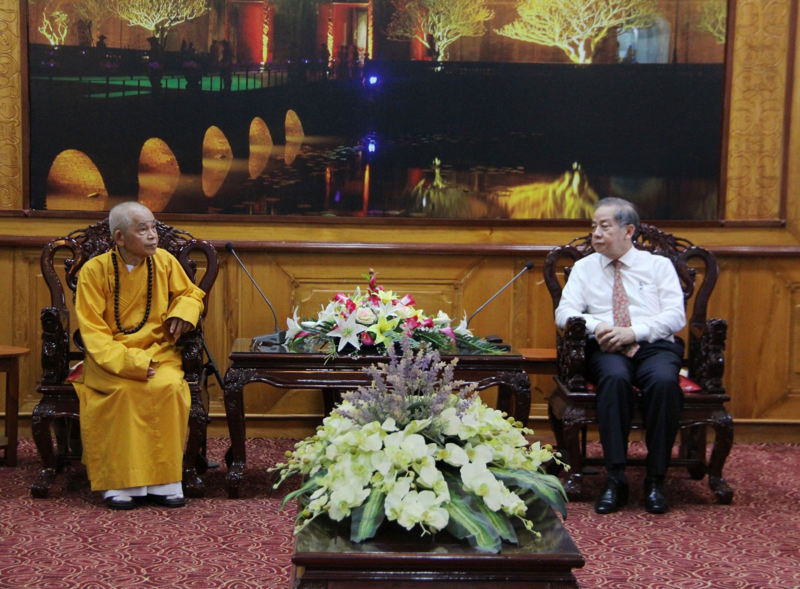At the meeting, on behalf of the Buddhist monks and nuns in Thua thien Hue, Most Venerable Thich Duc Thanh congratulated Mr. Phan Ngoc Tho on his being elected as chairman of the Provincial People's Committee.
