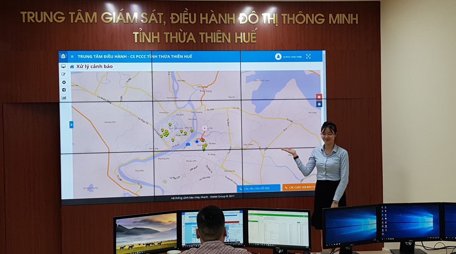 A working session at the Smart City Monitoring and Control Center of Thua Thien Hue province. Photo: Thai Binh