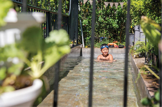 HNN.VN - With the passion and desire to give children and family a place to play and relax in their spare time, Nguyen Truong Tung, a construction engineer living on Nguyen Tuan Street (Hue City), did not hesitate to invest in building a swimming pool and a green garden on the roof of his house.
