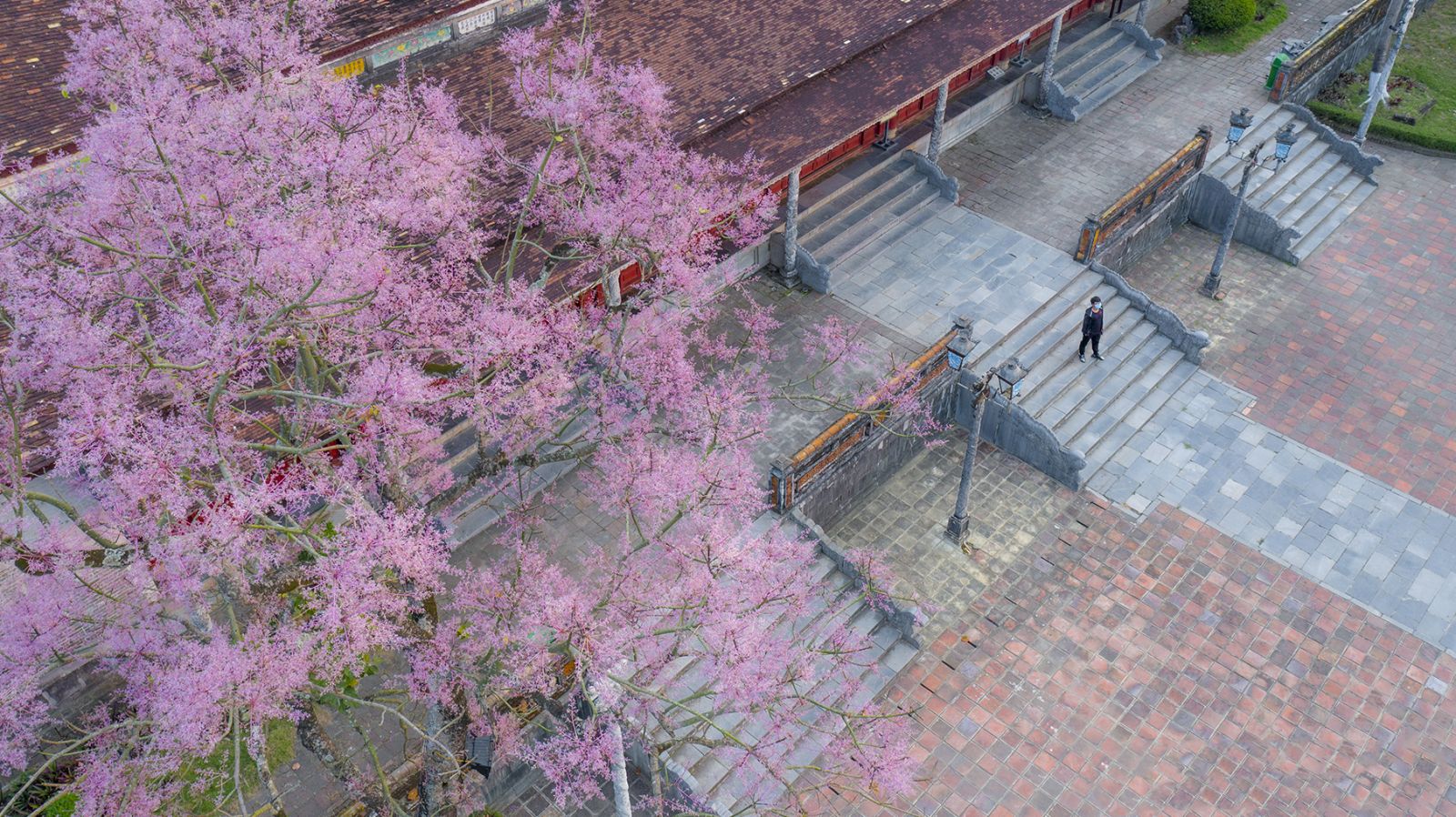 Firmiana simplex flowers are as gently beautiful as the beauty of Hue girls. In the midst of the vast Hue Imperial Palace, the flowers silently show their pink purple color, enchanting many people. There is an interesting fact that when the firmiana simplex flower falls, it retains its charming purple color.