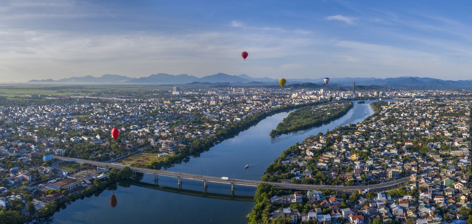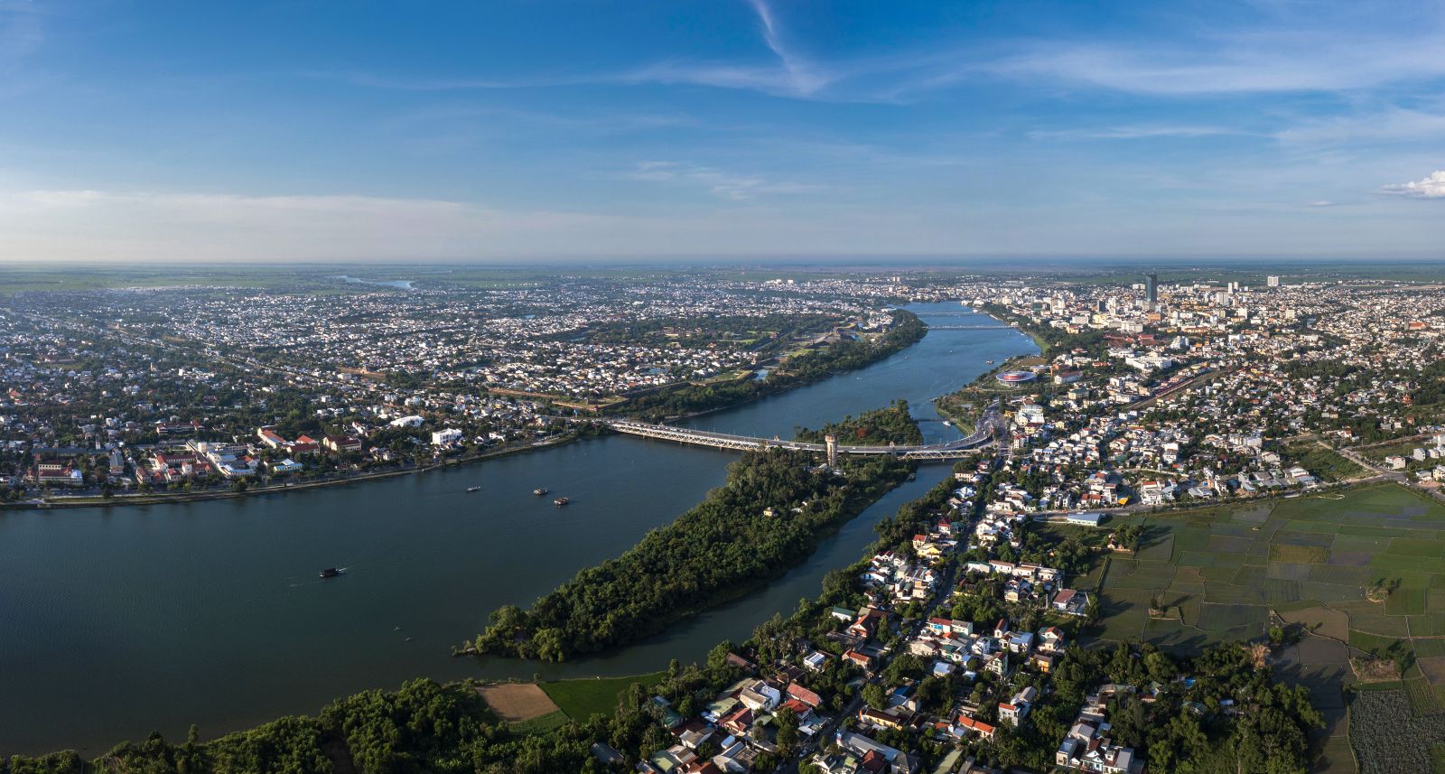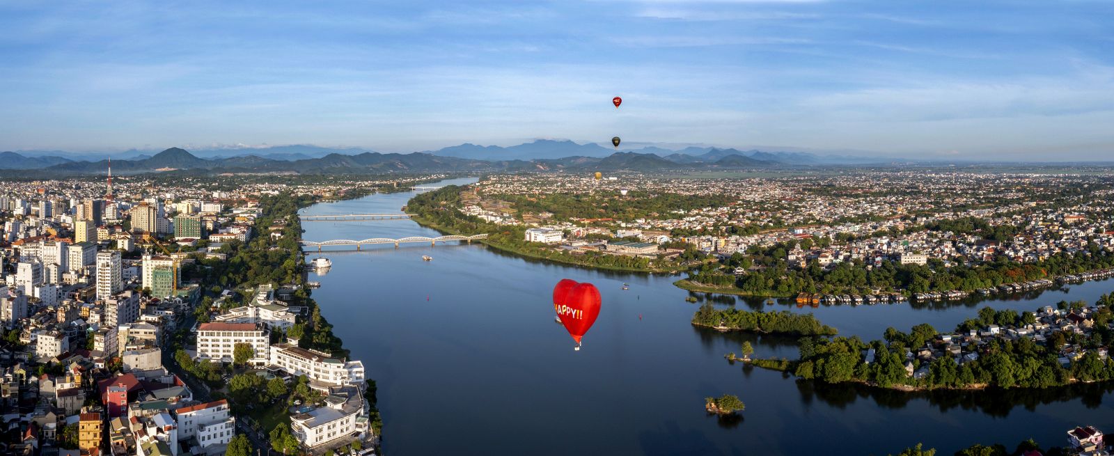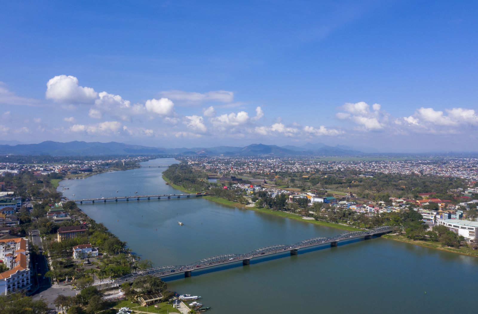 The romantic Huong River flows gracefully through the city