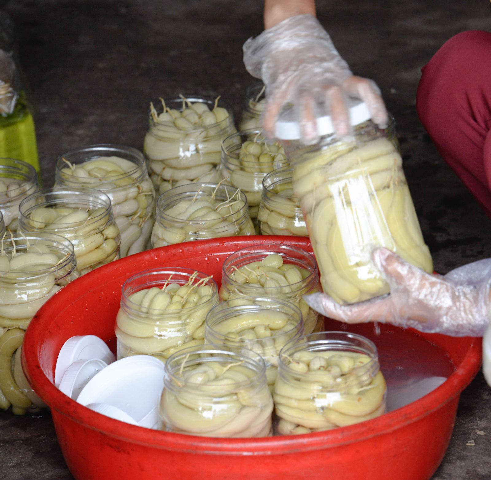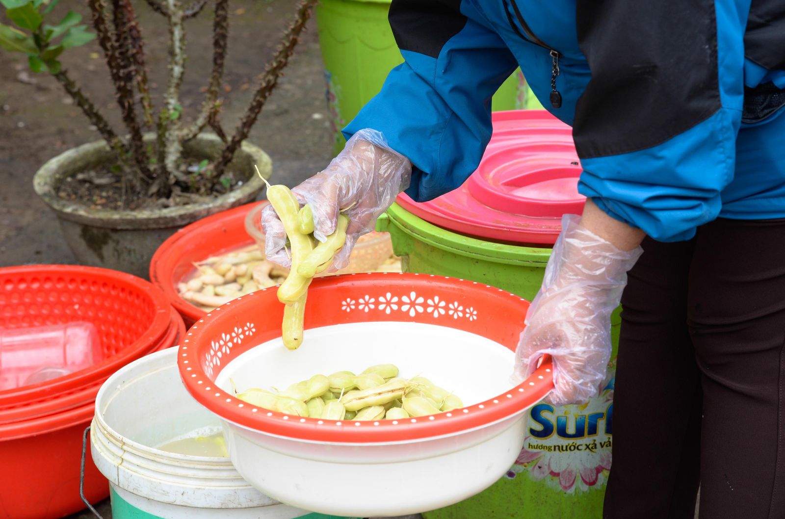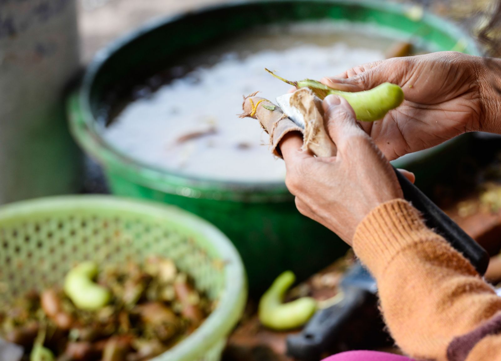 Cleaning the tamarinds before being soaked