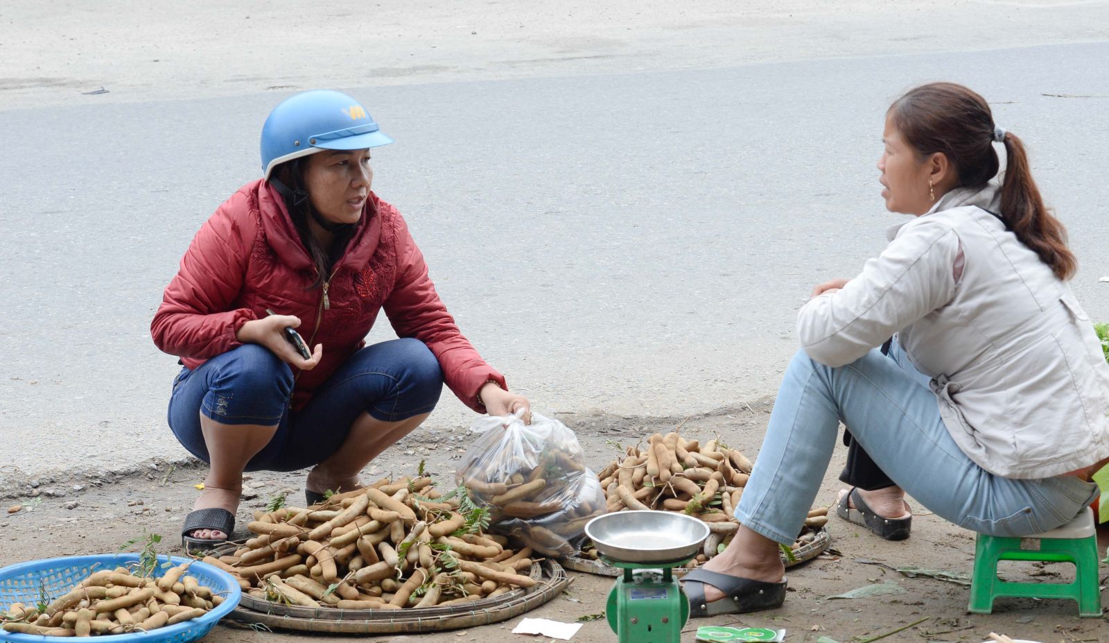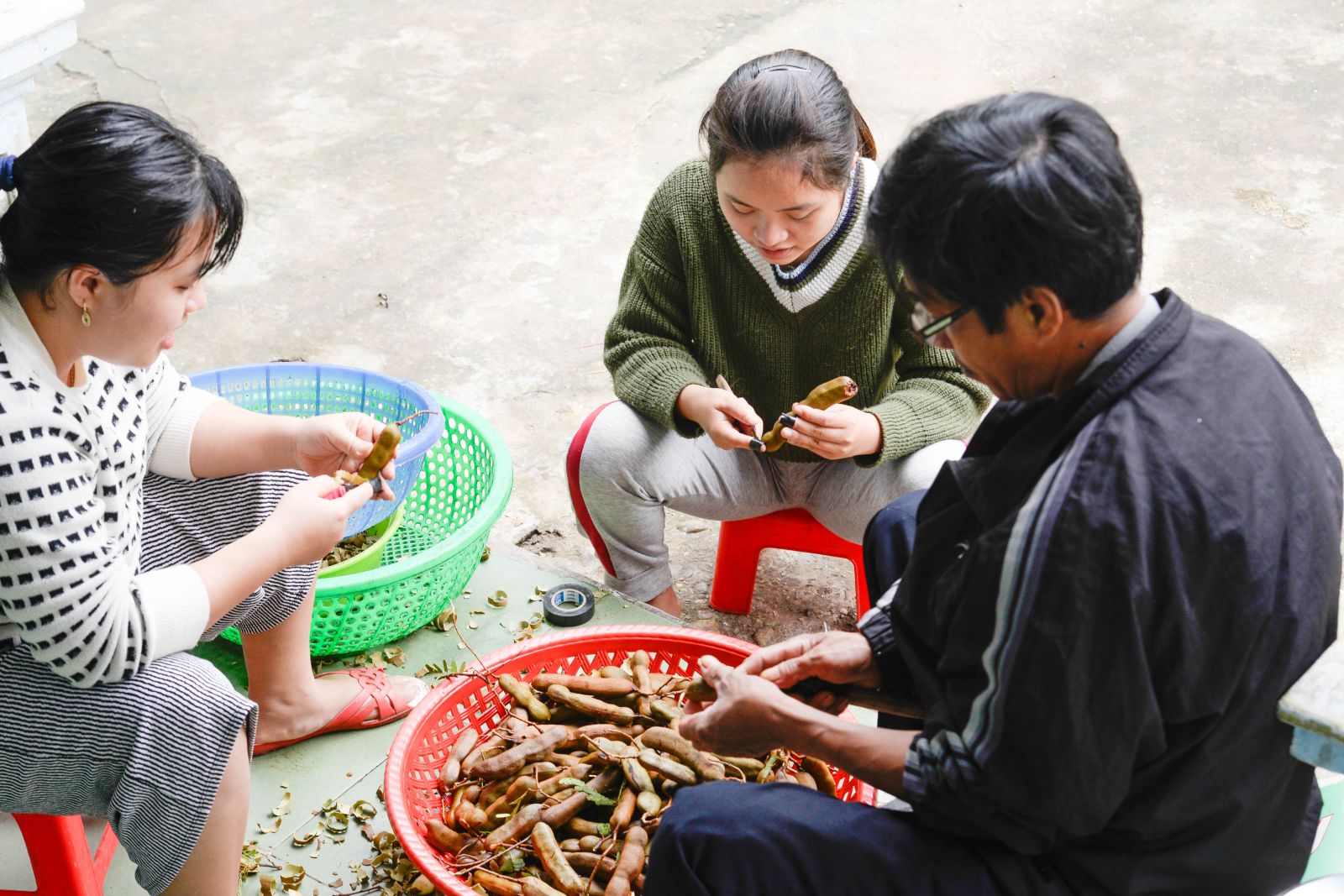 Gathering to peel tamarinds