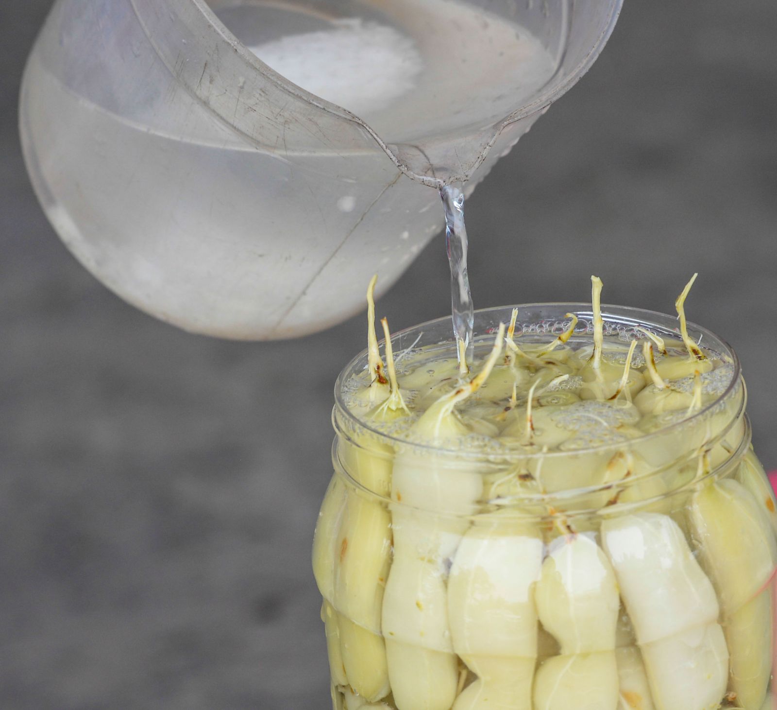 Pouring rock sugar water into jars