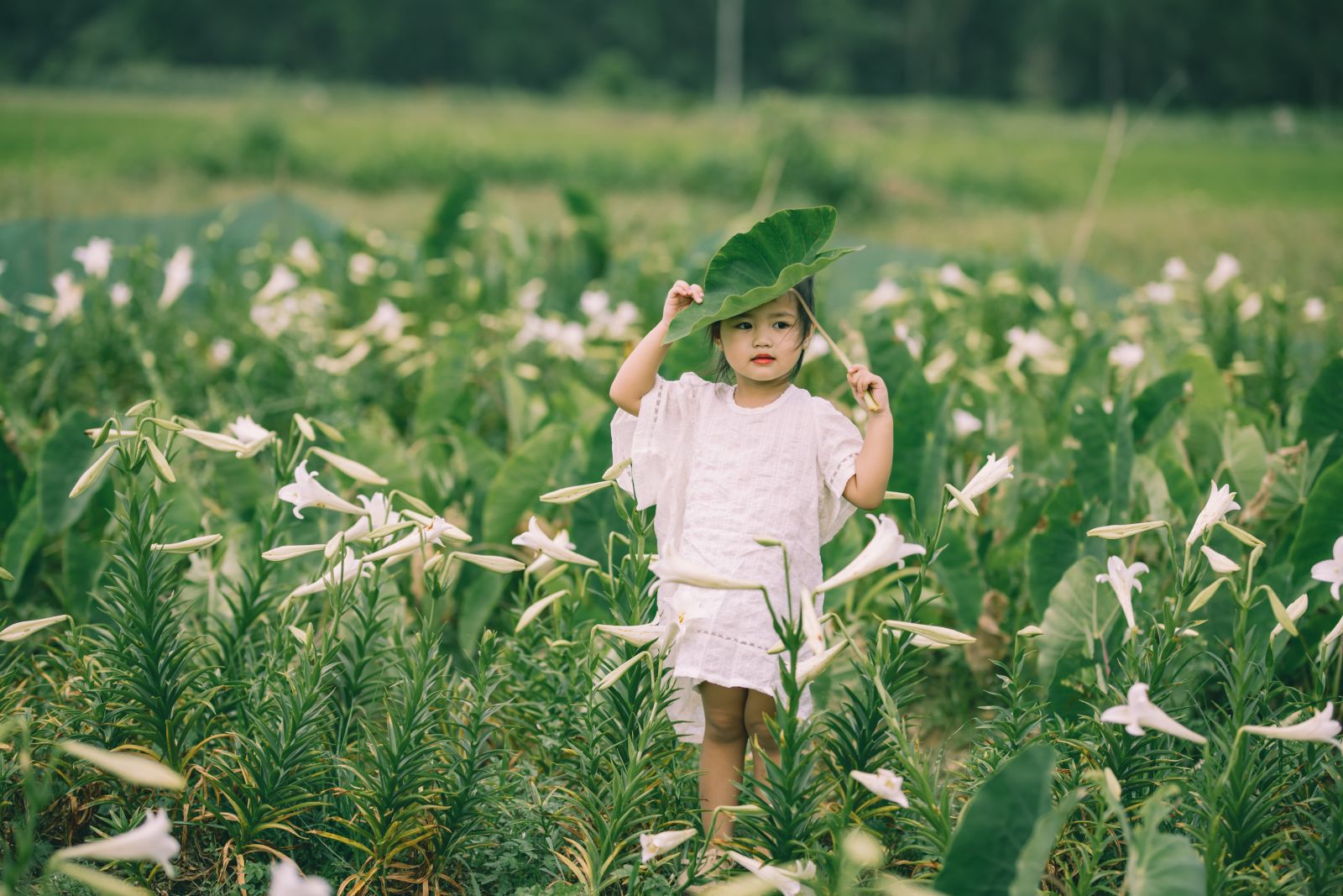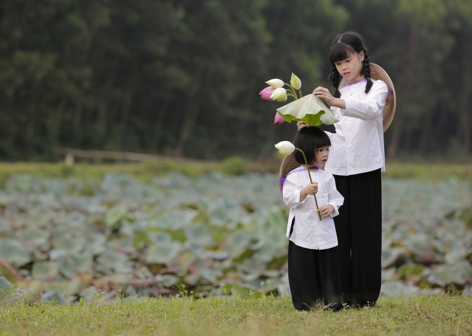 Hue News would like to introduce a series of photos about the innocent and cute facial expressions of the kids, taken by Trung Phan, a photographer, in Kim Long canola flower garden, Thuy Bieu lily garden, sunflowers in Khe Ngang lake, lotus flower pond at Emperor Gia Long's mausoleum, and An Hien garden house.