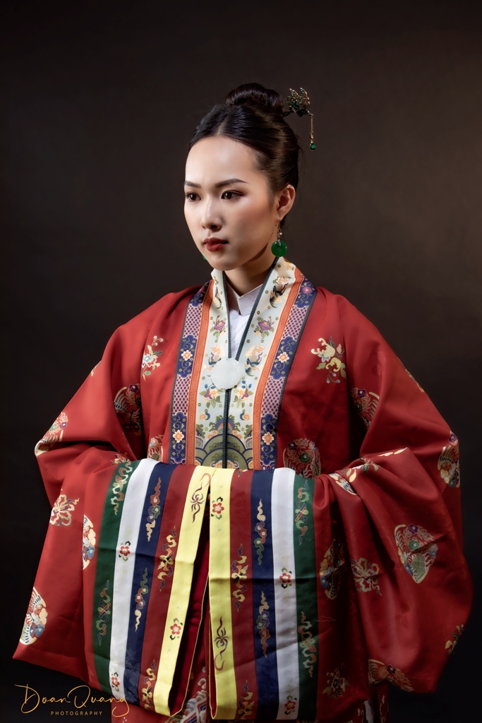Nhat Binh ao dai was originally a type of court dress for queens, concubines and princesses of the Nguyen Dynasty. The collar part of the dress has a large rectangular design, and the two-panel part is fixed with lanyard. When the dress is worn, its front part is shaped into a rectangle, so that why the dress is named “Nhat Binh”. The whole body of the dress is often decorated splendidly with round shape and phoenix patterns, interwoven with flower and leaf patterns, and the words of Phuc (happiness), Tho (longevity), etc.