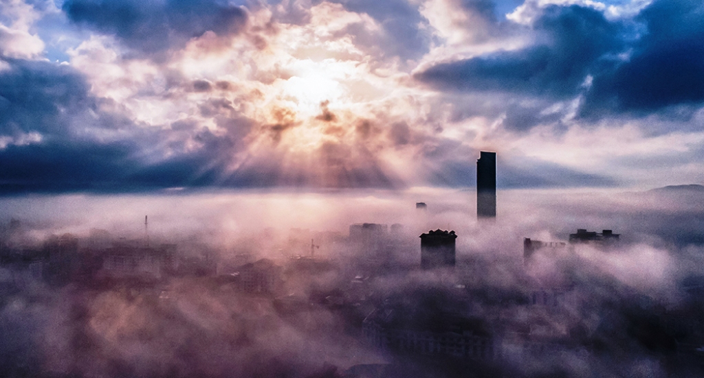 The city at sunset