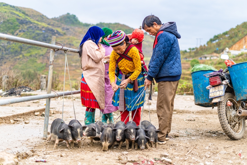 When going to Lung Phin backward market, visitors will be immersed in an atmosphere, which is as bustling and jubilant as Tet holiday. The locals bring their own wide range of products, from chickens, eggs, vegetables to sugar canes, etc., which are carefully packed to be sold in the market.