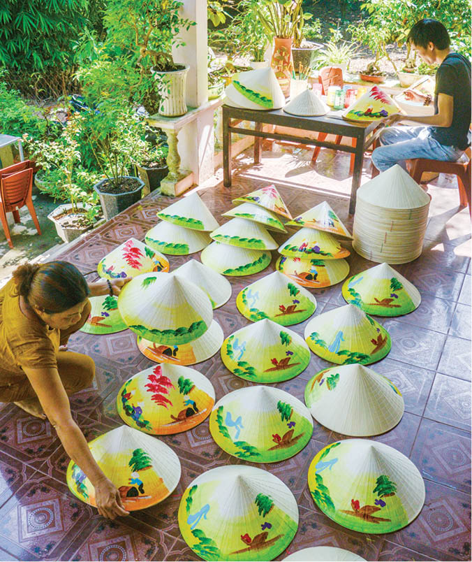 HNN.VN - A young man named Phan Quang Nhat, living on Bui Thi Xuan Street (Hue City), has shown his passion for painting by creating paintings on conical hats.