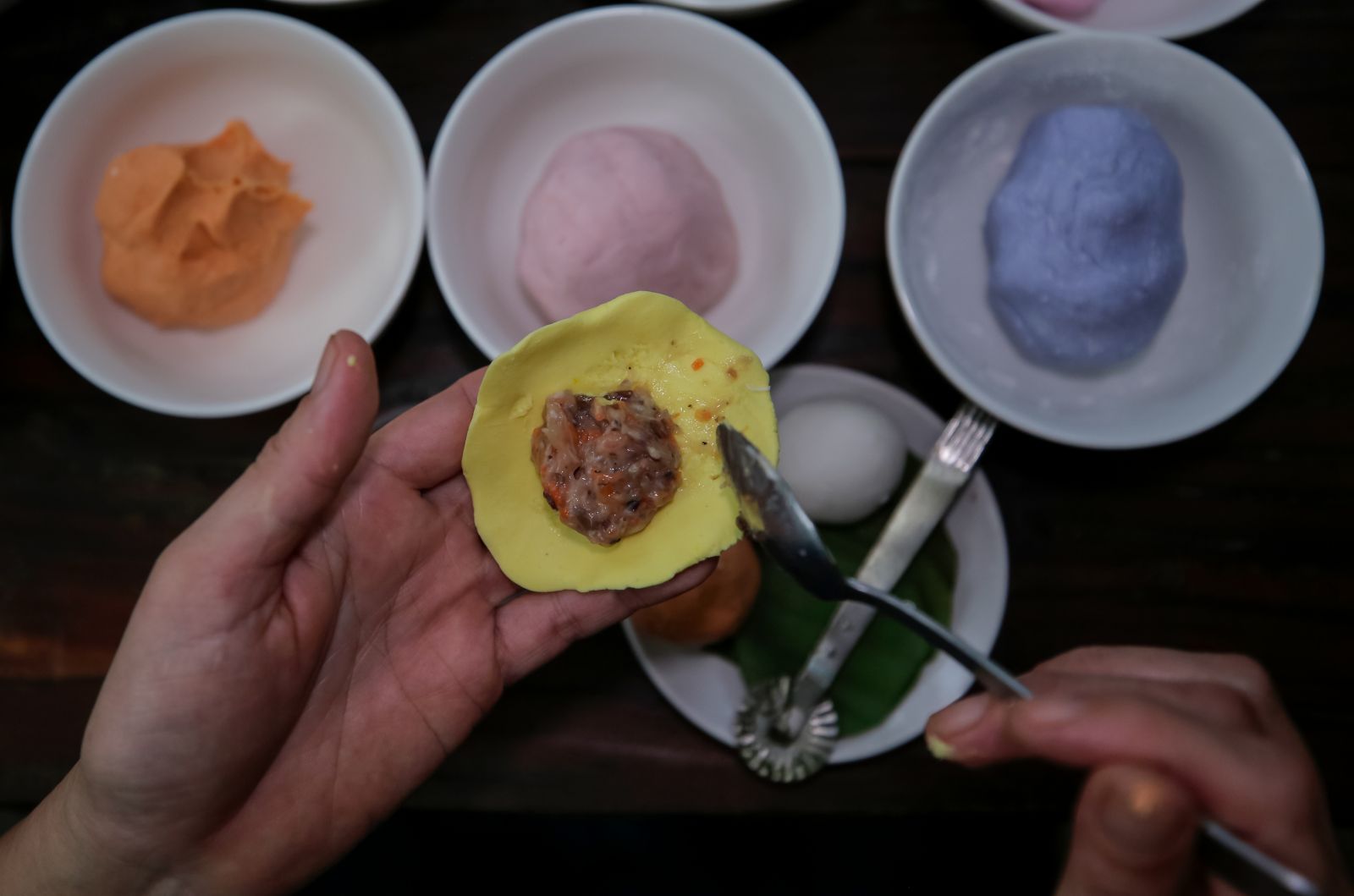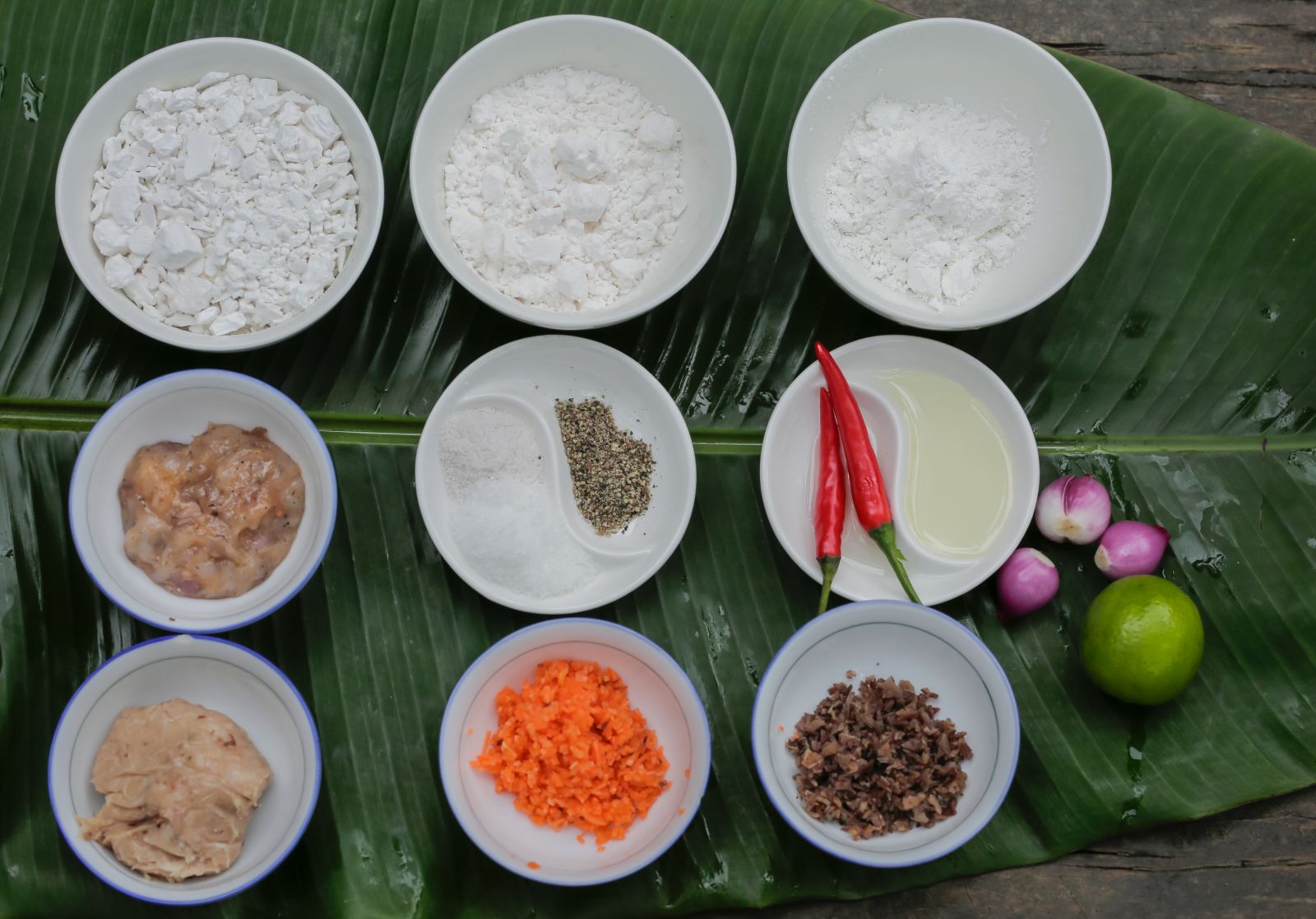 The dumpling cover is made from rice flour, tapioca starch, and glutinous rice flour. The stuffing is made from meat, shrimps, or mixed meat and shrimps. "In order to have tasty pie, you must choose fresh meat and shrimps," said Mrs. Huong.