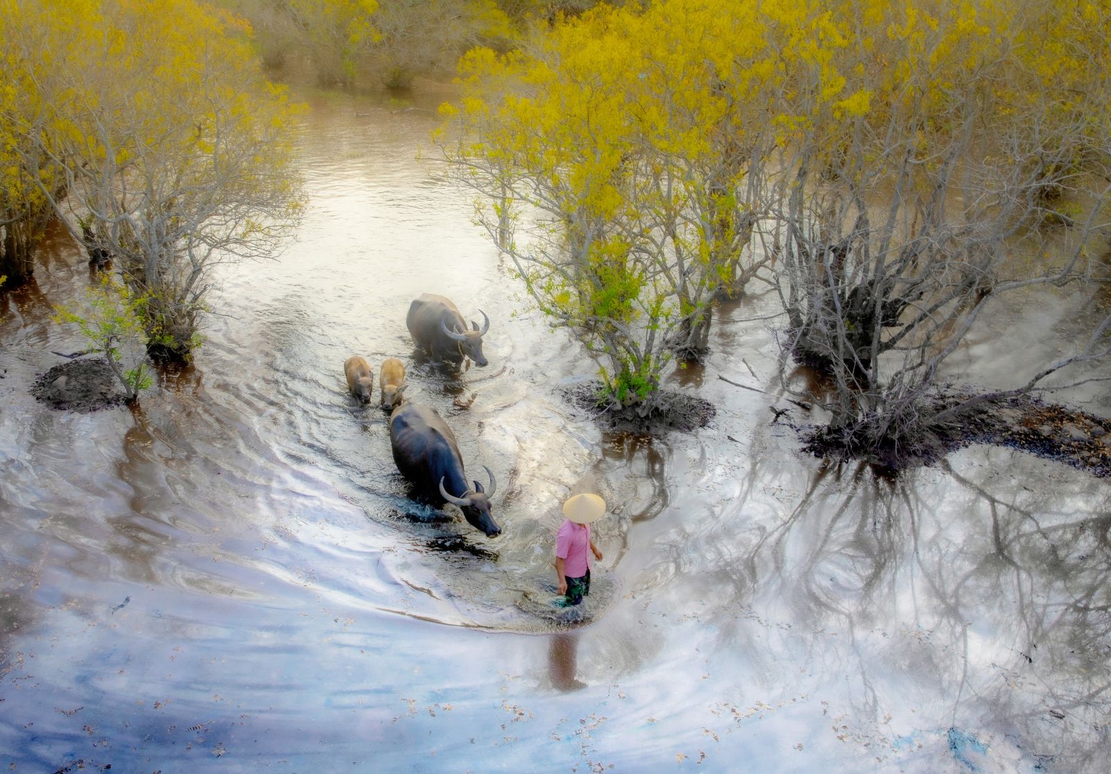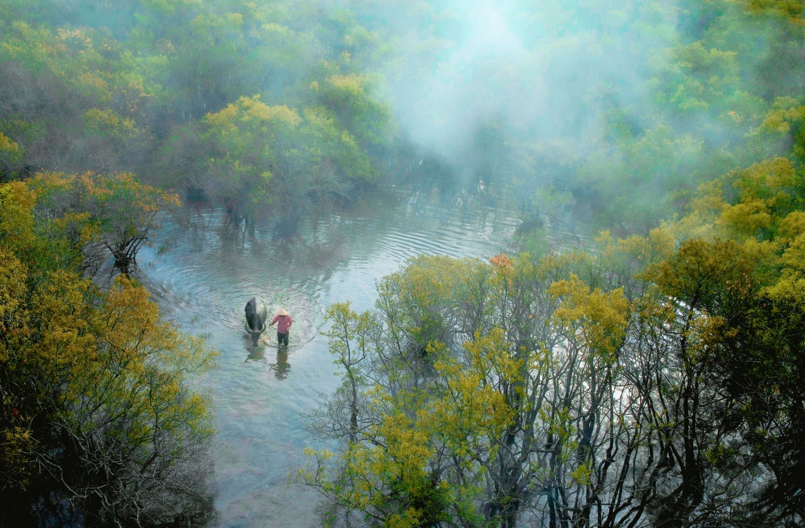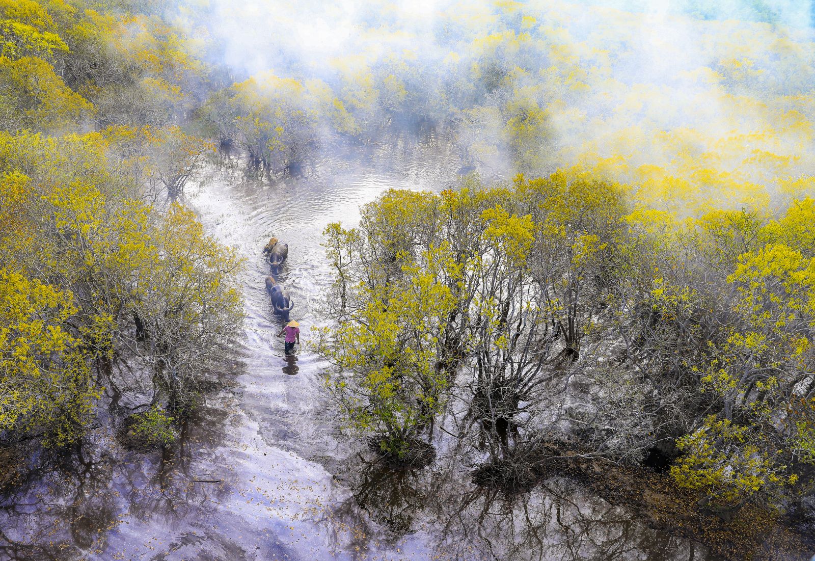 Beside the yellow cha forest as dreamy as the heavenly place, images of the people working there also provide creative inspiration and materials to beautiful shimmering photos.