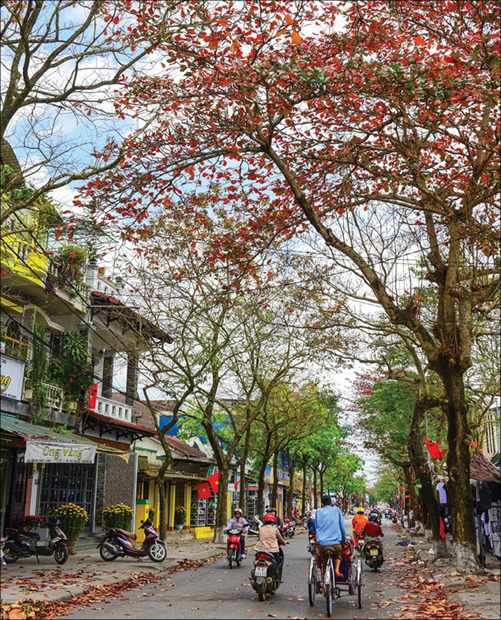 In early spring, Hue puts on itself a new shirt. The leaves of the old year, before leaving the branches to make room for new green sprouts, glow with a crimson color, making the space and the sky become more romantic and poetic.