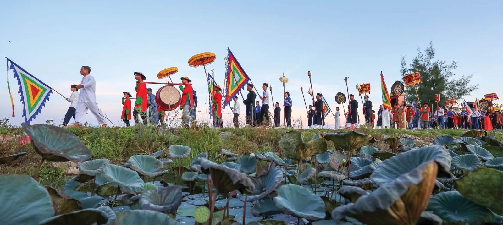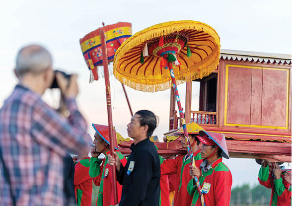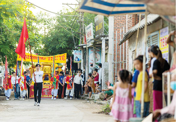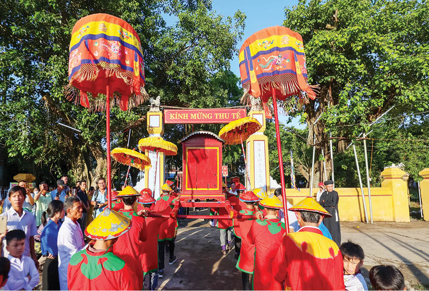 In comparison to some other localities, the Autumn offering ceremony in Chuon Village is more special and prominent. Specifically, in the procession of the three Thanh Hoang (Tutelary god), worshiped in the shrine located in the middle of the field (also known as Dong Mieu), is celebrated very beautifully and solemnly. This procession includes flags and palanquins. Every year, the villagers change the mascots, or well-woven and decorated objects of worship. The talented artisans, who are chosen to carry out the decoration for the procession, always consider this job their honor and sacred duty so as to contribute to the success of the whole ceremony.