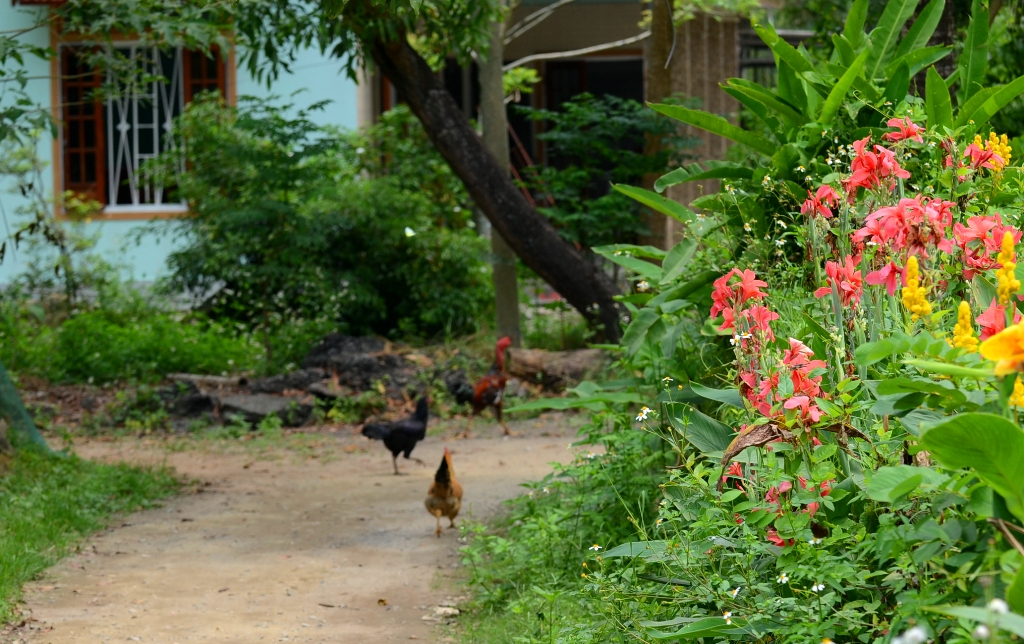 Contrary to the scarlet of the Clerodendrum, the daisy gently shows its beauty with tiny white and pure petals