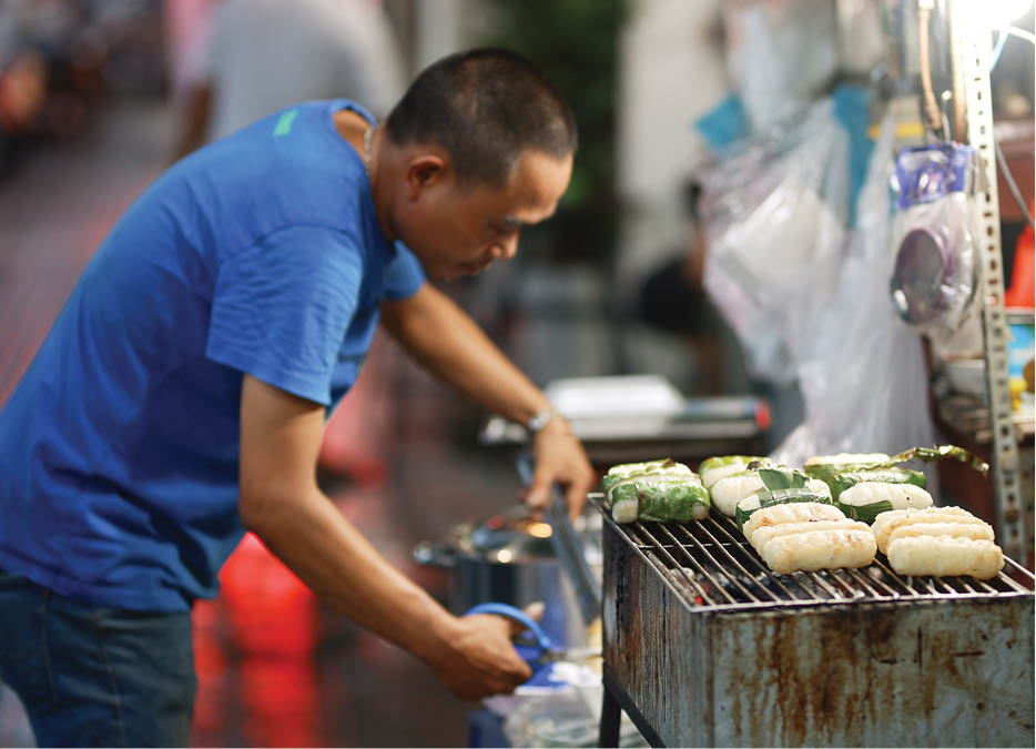 The banh ep (Hue pressed cake) can be found on Nguyen Du Street