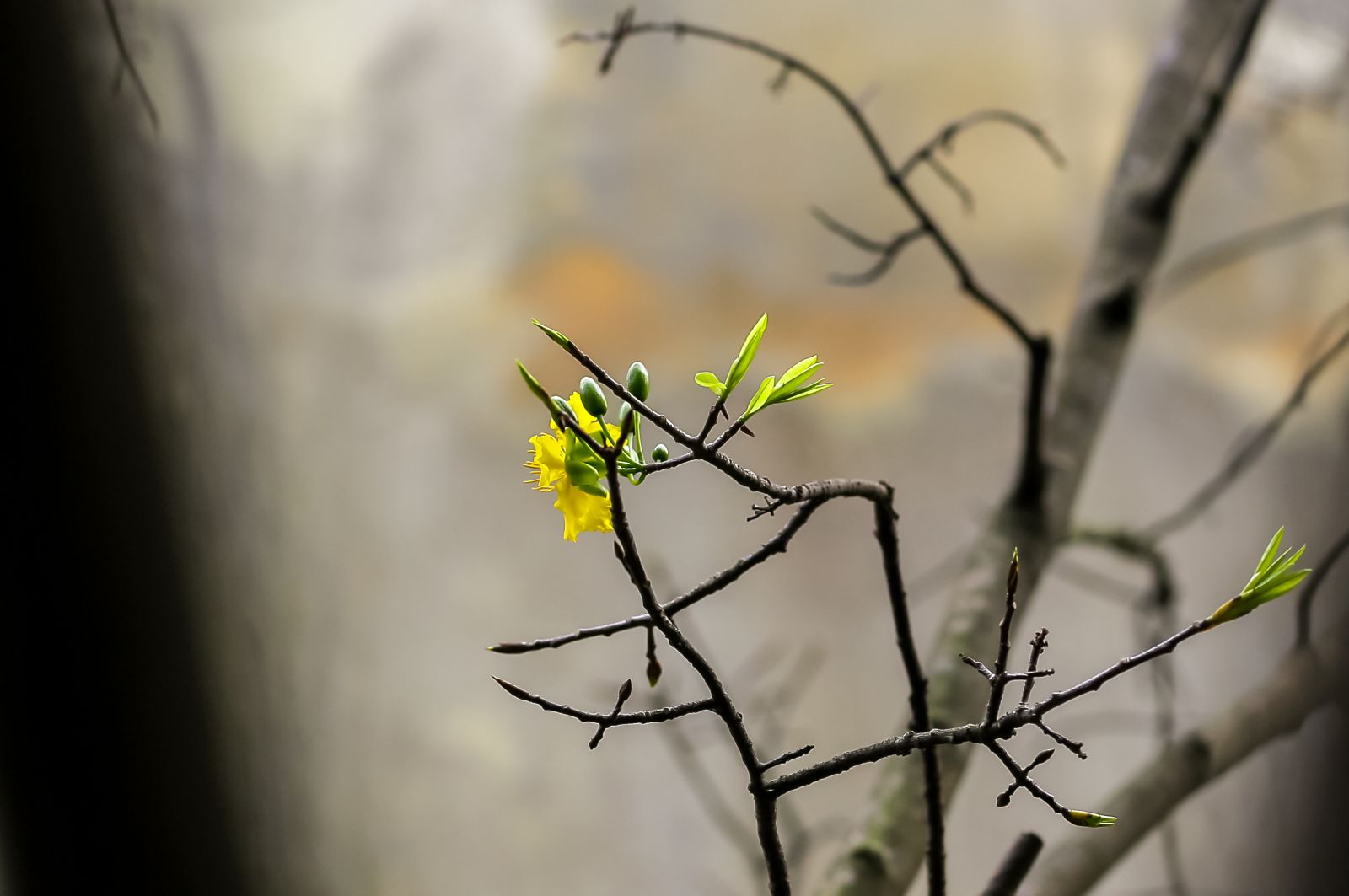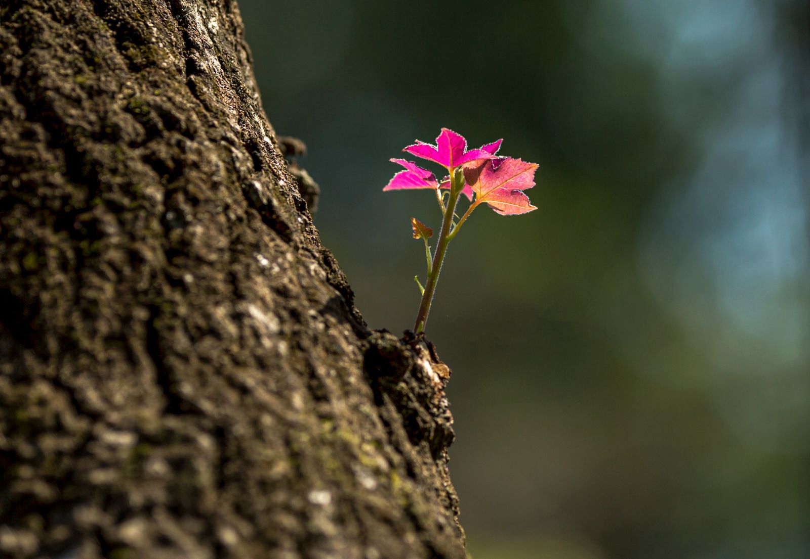 From the mother tree trunks, young shoots pierce the ruffled barks strongly, waking up from sound sleep