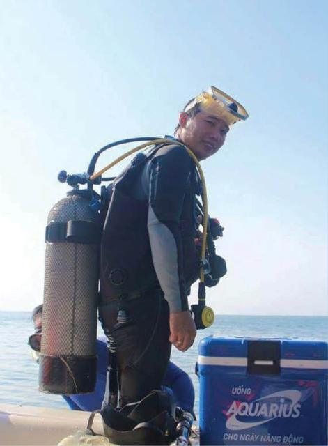 Young businessman Tran Quoc Hung, who always accompanies visitors in diving tours