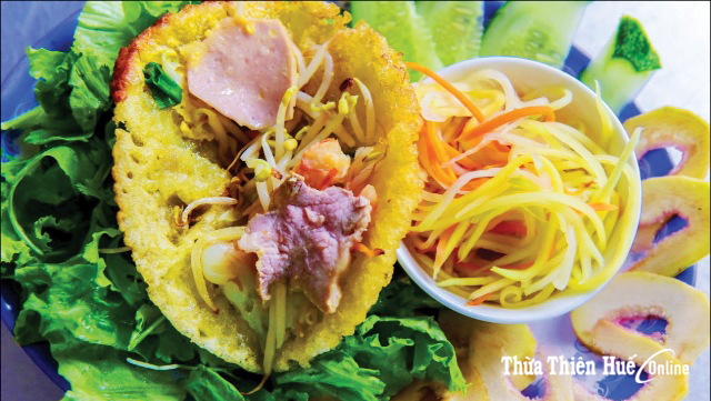 The most Hueish is banh khoai. Why the name khoai (glad)? Hue inhabitants say it is so called because it is so enjoyable. Scholars think banh khoai is best when hot with smoke (khoi) so it is often made while eating. Hue inhabitants mispronounce khoi as khoai, hence the name. Near Thuong Tu Gate on Dinh Tien Hoang St., there are two famous banh khoai restaurants Lac Thien and Lac Thanh, always crowded with diners.