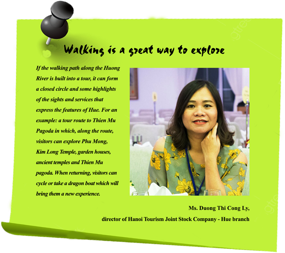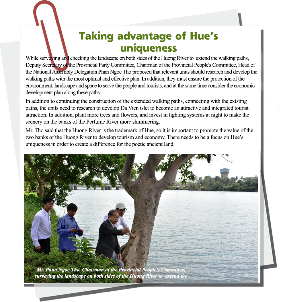 Mr. Hoang Hai Minh - Chairman of Hue City People's Committee said that in addition to the existing paths along the Huong River, when the upcoming paths extending from Da Vien bridge to Huyen Tran Cong Chua Street and to Thien Mu pagoda are constructed, there will be a focus on elements of keeping the natural landscape with systems of lawns and trees running along the river...