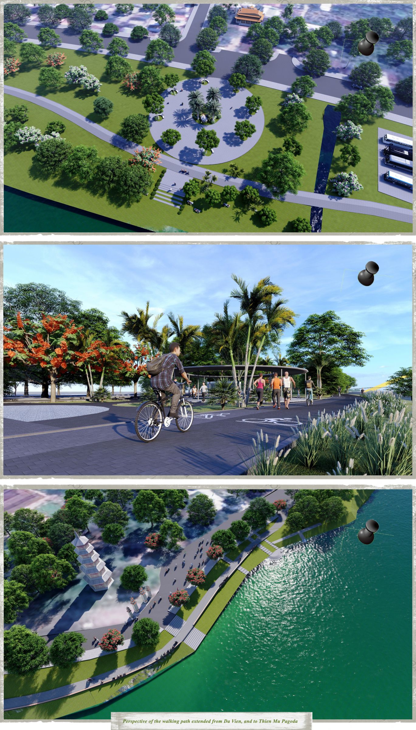 The embellishment and planning along the two banks of the Perfume River have always been methodically taken into account for sustainable development. The embellishment that is realized through the walking paths running under the rows of green trees which are the "green lungs" nourishing the soul of the city.