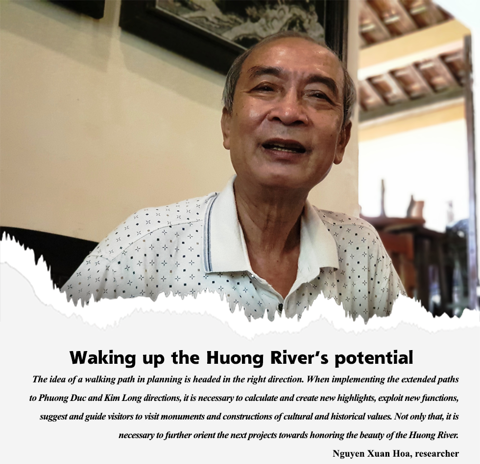 It is not until now that the government has devoted efforts to embellishing and protecting the landscape, creating public spaces for people on both sides of the Huong River. Since ancient times, when Hue was chosen as the capital for the construction of the citadel, the Nguyen dynasty had paid great attention to Feng Shui factors, the Huong River was strictly protected. When the French came, they constructed works along the southern bank of the Huong River and still kept the strip of land along the Huong River flowing through the urban center just to plant trees and grass.