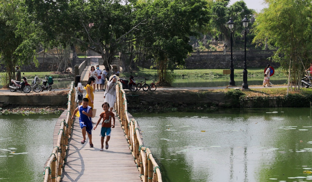 Tinh Tam Lake is considered the royal garden, and is the place mentioned in a series of poems praising the 20 most beautiful landscapes of Hue Imperial Capital of Emperor Thieu Tri. The lake is rectangular in shape, with a circumference of nearly 1,500 meters. In the lake, there are Bong Lai and Phuong Truong islands, with unique architectural systems of the old royal court.