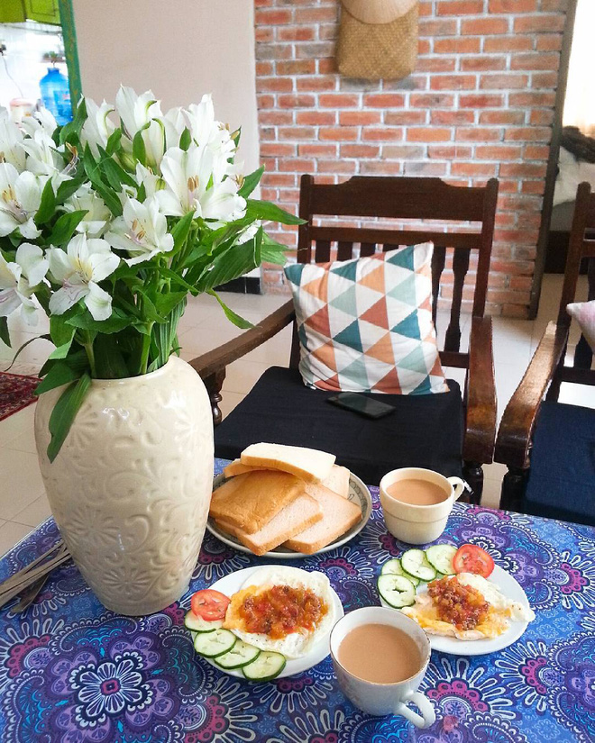 Having studied interior design, Mr. Linh, the owner of the homestay, is very enthusiastic with each piece of furniture such as table, chair and old crockery in his house. Due to the simple but refined and strange design, some visitors joked: "It’s possible to take a hundred photos on each square meter here," so you should not miss this great place for "posers" like Mosaic Garden. Rooms are diverse and beautiful at a price of about 500,000 VND/night.