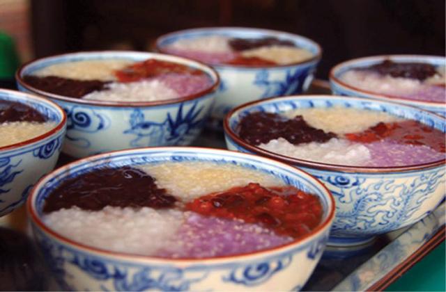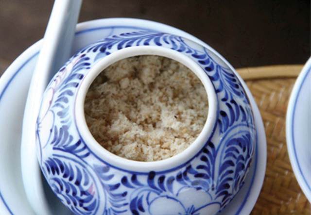 Y Thao Restaurant is among the few restaurants that serve a complete menu of salt dishes like one in the past. The restaurant owner said each salt dish must accompany a different kind of food. Plain salt goes with five-colored porridge; peanut and sesame are eaten with sticky rice; meat and fish salt are eaten with boiled rice, etc. People who enjoy salt dishes will obtain a balance of yin and yang. Salt dishes become food for health. A researcher told me that eating salt dishes means "eating" the culture of Hue. One should chew slowly, a bit at a time to enjoy the delicious, sweet taste. Hue salt dishes are unique. Preparing a salt feast is an art, only found in Hue. For Hue people, eating salt dishes is to contemplate, not just to know.
