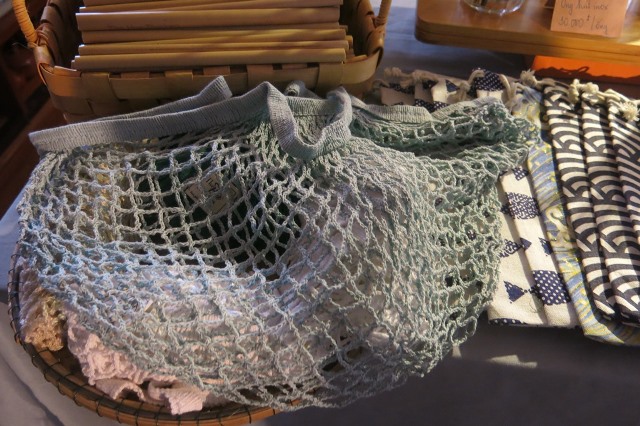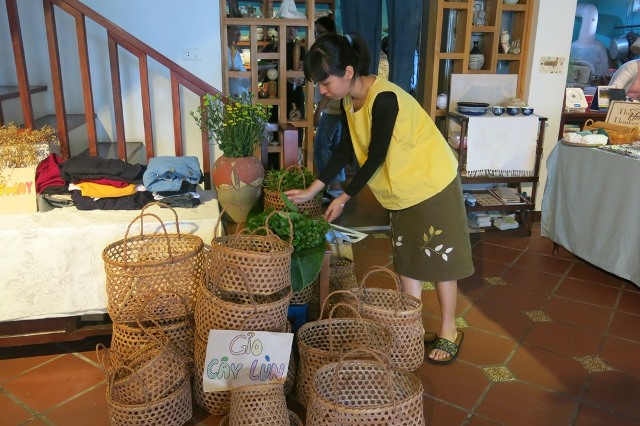 At the stall of Bear House, visitors can buy net bags for shopping, or baskets made of dwarf trees, the products from Can Tho. These products are similar to bamboo and rattan ones but have higher durability, and do not get moldy in the rainy season; therefore, users can use them for more than 5 years.
