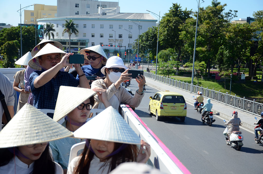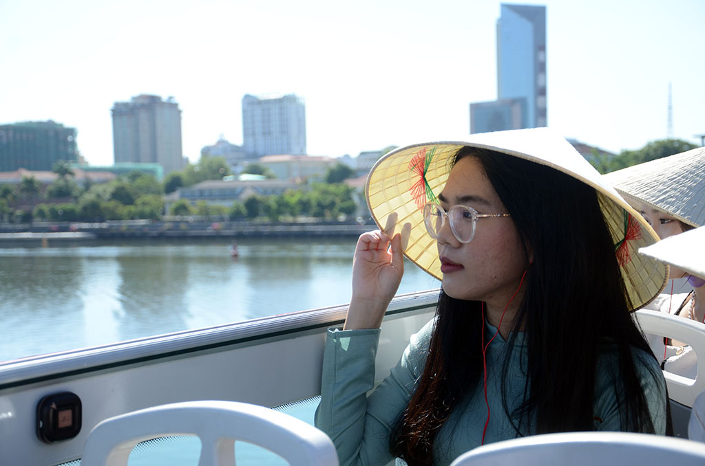 The special feature of the bus is roofless, thanks to that, visitors will have a chance to experience the scenery of Hue City, which is ancient, fresh and green, familiar but also strange_a city with rich history, cultural stories and impressive architecture. When taking part in the trip, each visitor is given a typical conical hat of Hue, making it different from other destinations in the country. The bus runs at a slow speed so that visitors will have enough time to pose for "checking-in" photos at the tourist attractions, where the bus passes by.