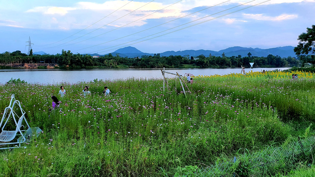 At some destinations, exploring and experiencing spots in Hue city and other districts and towns were also selected by tourists to "check in" and have fun, such as the flower garden in front of Van Thanh (Huong Ho ward, Huong Tra town), Thuy Thanh flower garden (Huong Thuy town), Community tourism village ANôr (A luoi district), the scene settings of the Dreamy Eyes (Mat Biec) movie, Thac Mo Eco YesHue (Nam Dong district), etc.