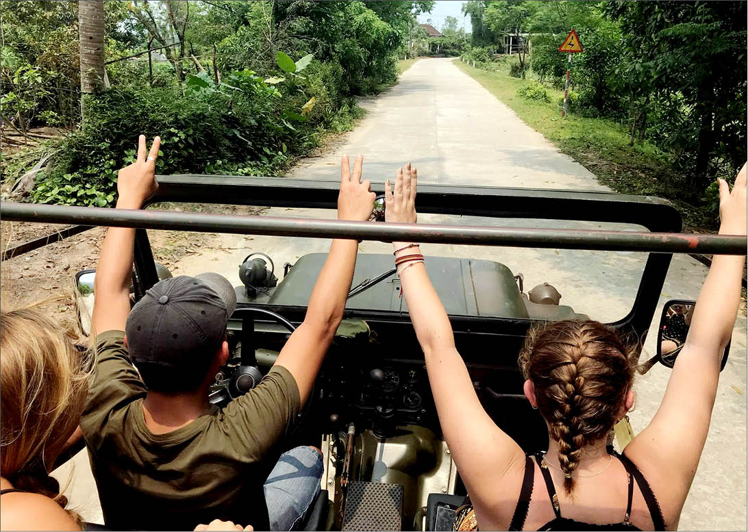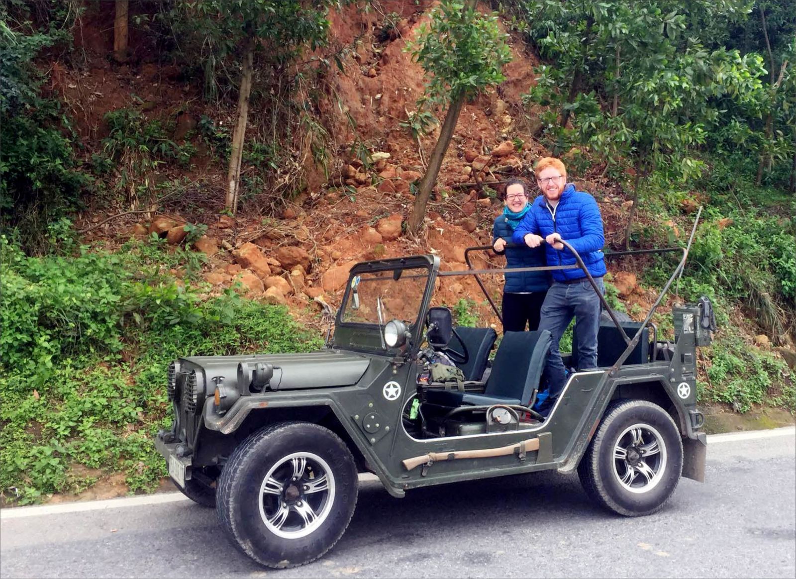Many tourists choose to travel by Jeep to explore Hue on NH 49B