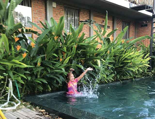 Another highlight of the hostel is its swimming pool, which is small but very clean. The hostel is located on the high hill and has few guests due to the impact of the epidemic earlier this year. However, by the time we arrived, the lovely little lady owner had filled the swimming pool with water, and prepared clean rooms, tables and chairs, cups and dishes ready to serve guests. That thoughtfulness along with the dreaming space by the side of Thien An Hill gave us a complete night of joy.