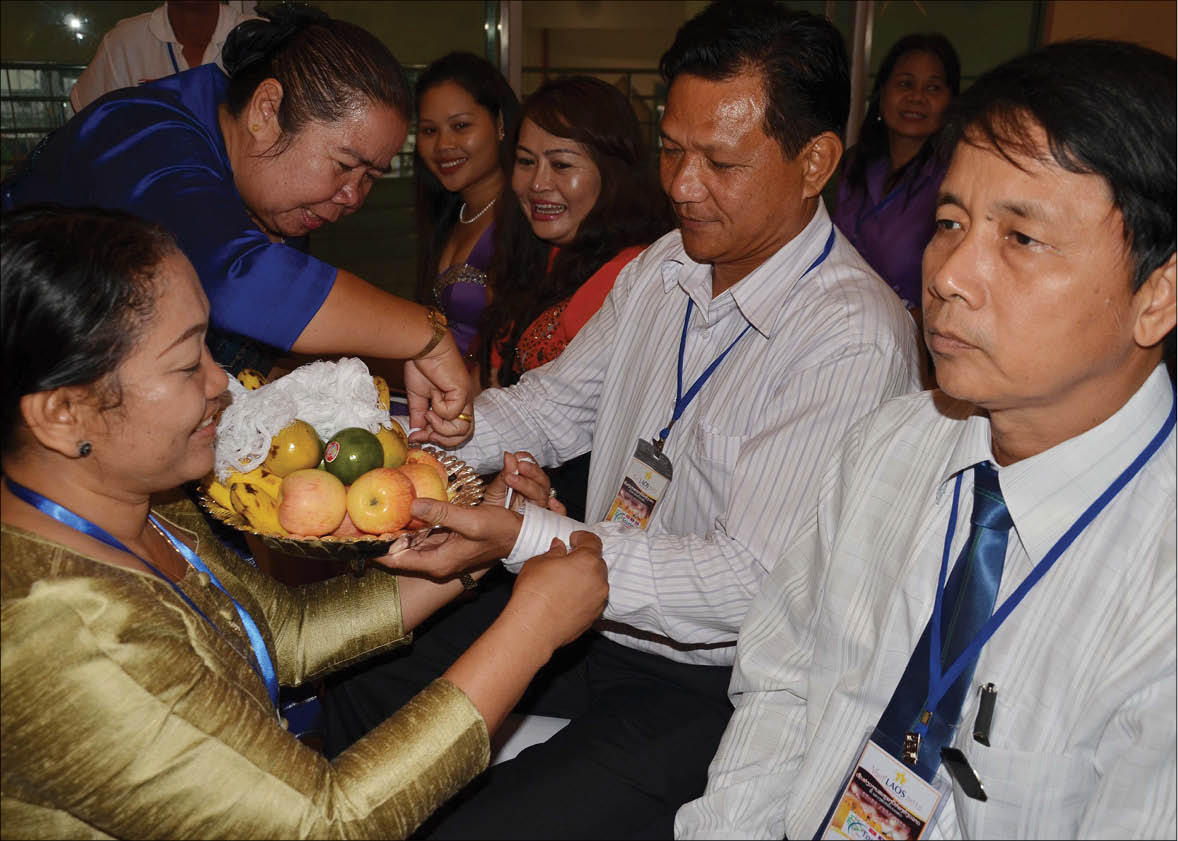An unforgettable experience with the customs of tying white thread around the wrists for well-being and good luck in Laos. Photo: DT