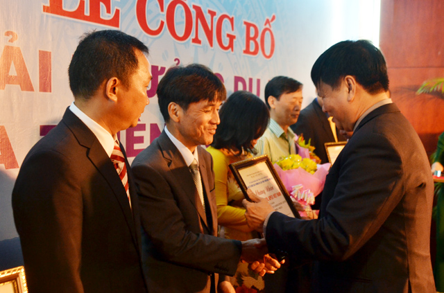 Mr. Nguyen Dung, Vice Chairman of the Provincial People's Committee presents the awards to leading tourism businesses