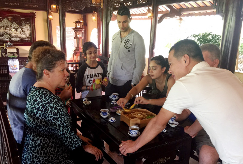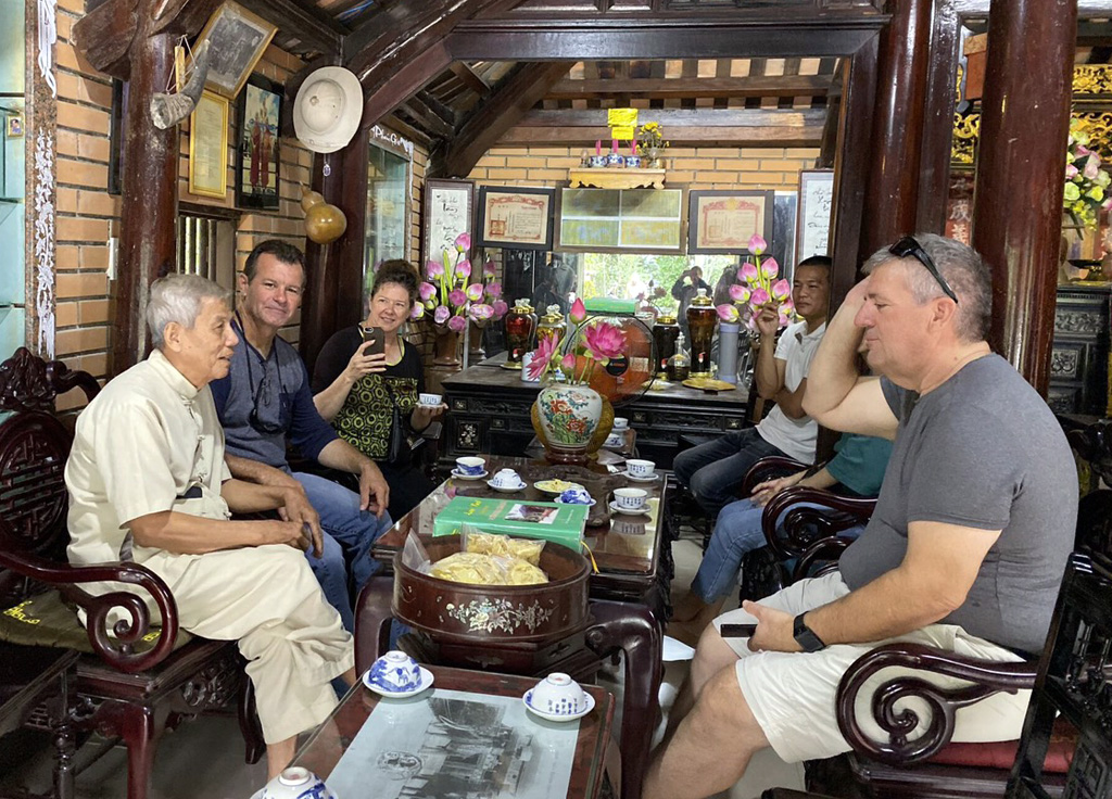 Listening to Mr. Ho Xuan Dai (a famous garden house owner in Thuy Bieu) telling stories about the history of traditional houses in Hue