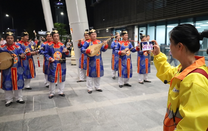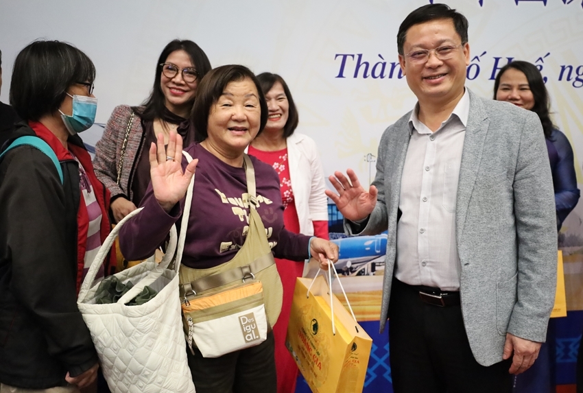 All passengers on the flight were welcomed by leaders of the City People’s Committee; the representatives of the Department of Tourism; the Department of Foreign Affairs; the City Police; Hue Monuments of Conservation Center, the Tourism Association; Phu Bai International Airport; the Middle Region Airport Authority at Phu Bai International Airport; and other relevant units. They were welcomed with flowers, commemorative gifts, and celebratory performances featuring Royal Court Music and vibrant unicorn dances.