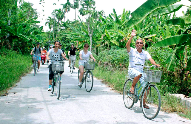 Cycling around the villages and experiencing being a farmer interested visitors when in Hue
