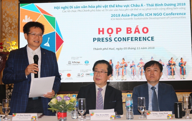 HNN.VN - On the morning of November 5, Hue Monuments Conservation Centre and the International Information and Networking Centre for Intangible Cultural Heritage in the Asia-Pacific Region under the auspices of UNESCO (ICHCAP) co-organized a press meeting on the 2018 Asia Pacific ICH NGO Conference.