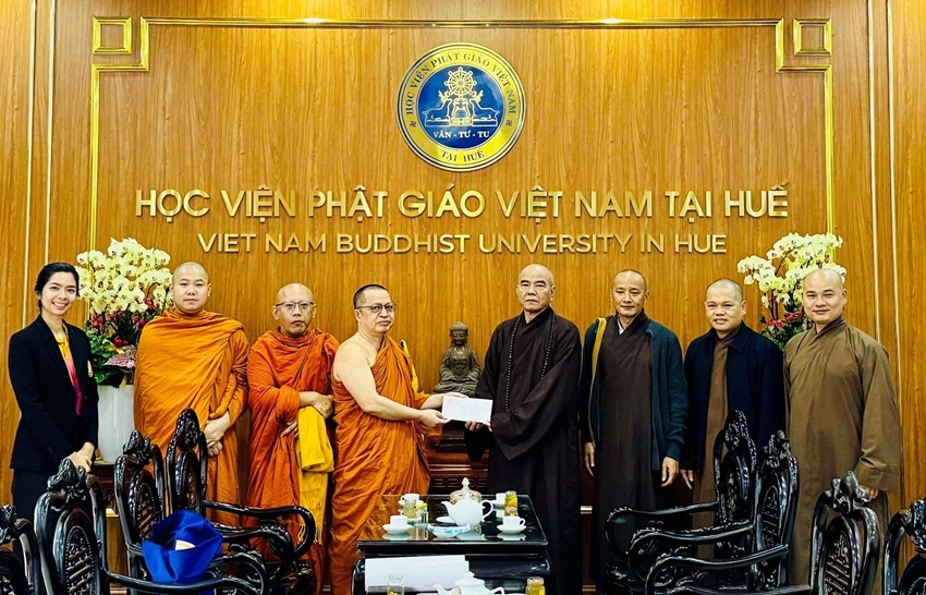 HNN.VN - On February 27, a delegation from Mahachulalongkorn University (MCU, Ayutthaya, Thailand), led by Venerable Phramaha Pomchai Sirivaro (Assoc. Prof. Ph.D.) - Vice Rector, Head of the Philosophy Department, visited and worked with the Vietnam Buddhist Academy (VBU) in Hue.