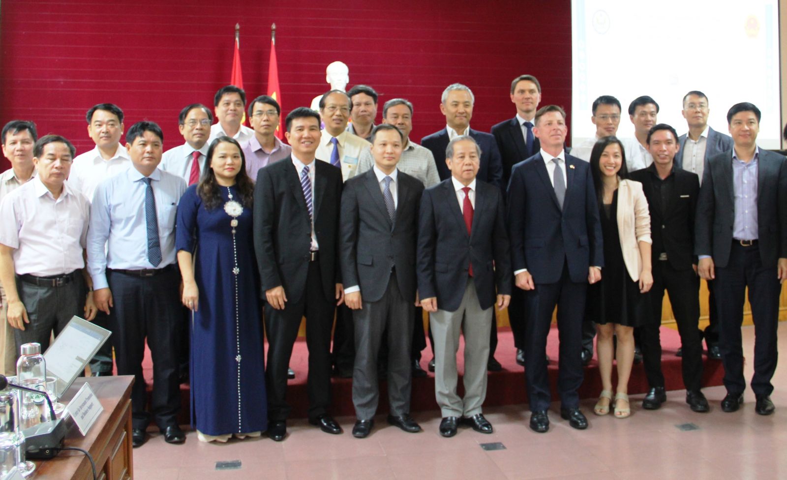 Chairman Phan Ngoc Tho posing for a photo with representatives of great IT corporations of the United States
