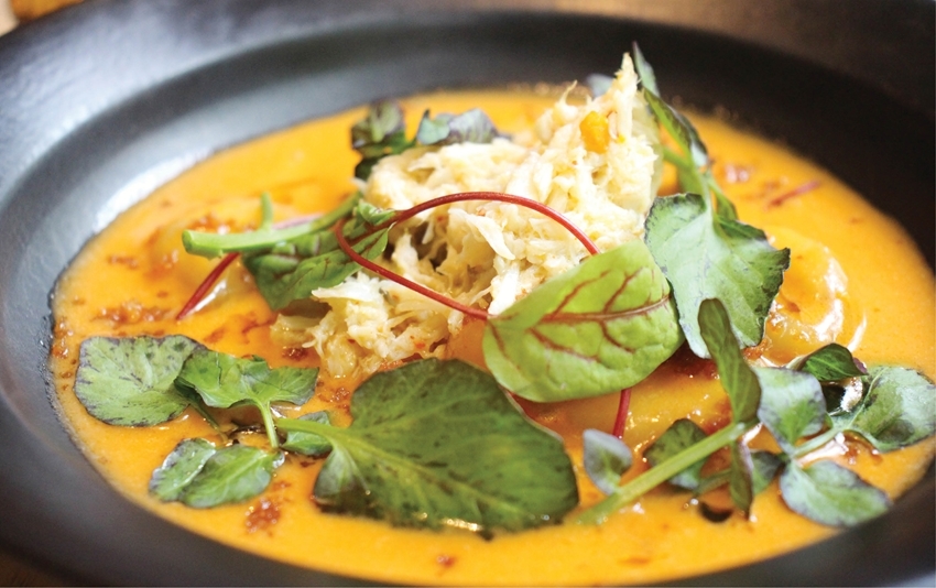 The second dish is “Sweet Potato & Crab,” which Kevin calls bun rieu cua or banh canh cua - a rustic dish with banh canh noodles and crab roe that has been “reborn.” Sweet potato tapioca gnocchi replaces the noodles, combined with tomato sauce and grilled crab roe. The highlight is Maryland jumbo lump crab meat, a premium crab meat, bringing the price per serving up to $30, which is 4.5 times more expensive than typical Vietnamese restaurants in America.