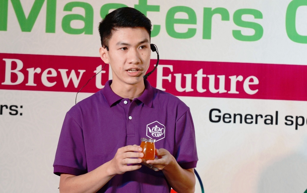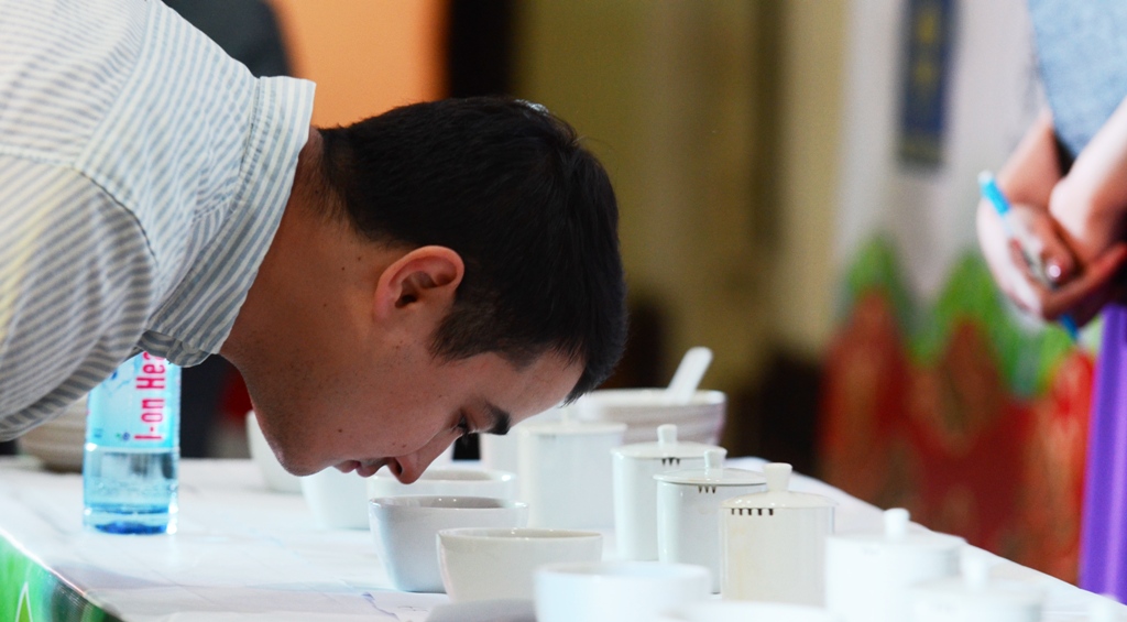 A representative from Lai Chau, Vietnam participating in the tea tasting contest