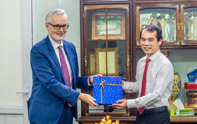 At the meeting, Mr. Guido Hildner and leaders of Hue Monuments Conservation Center discussed the cooperating and funding plan of the German Government for the conservation and restoration of the sites in the Complex of Hue Monuments over the past years, especially for the coming period (2021-2026).
