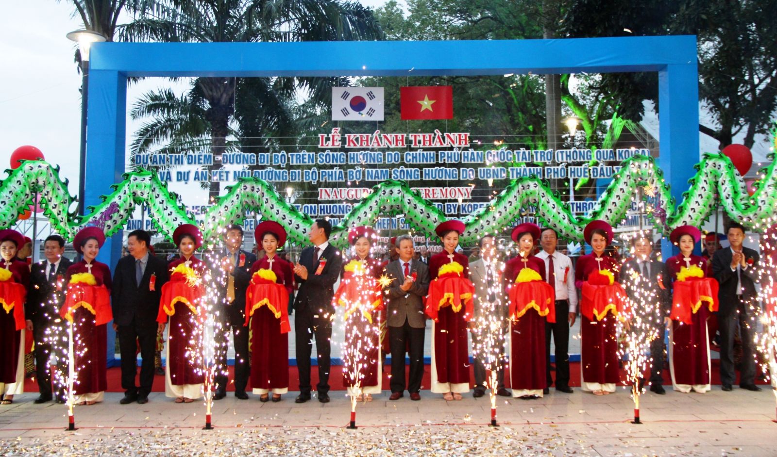HNN.VN - On the afternoon of January 15, Hue City People's Committee held the inauguration ceremony of the pilot project on the walking street on the Huong River funded by the Korean Government, and the project connecting the walking street on the Southern bank of the Huong River invested by Hue City People's Committee.